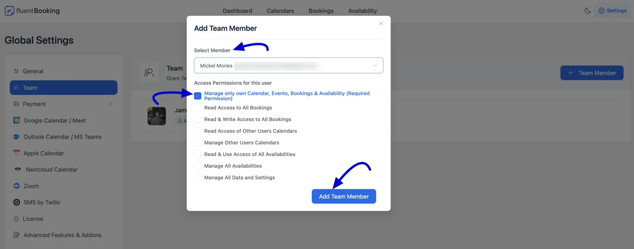 • Manage only own Calendar, Events, Bookings & Availability (Required Permission)