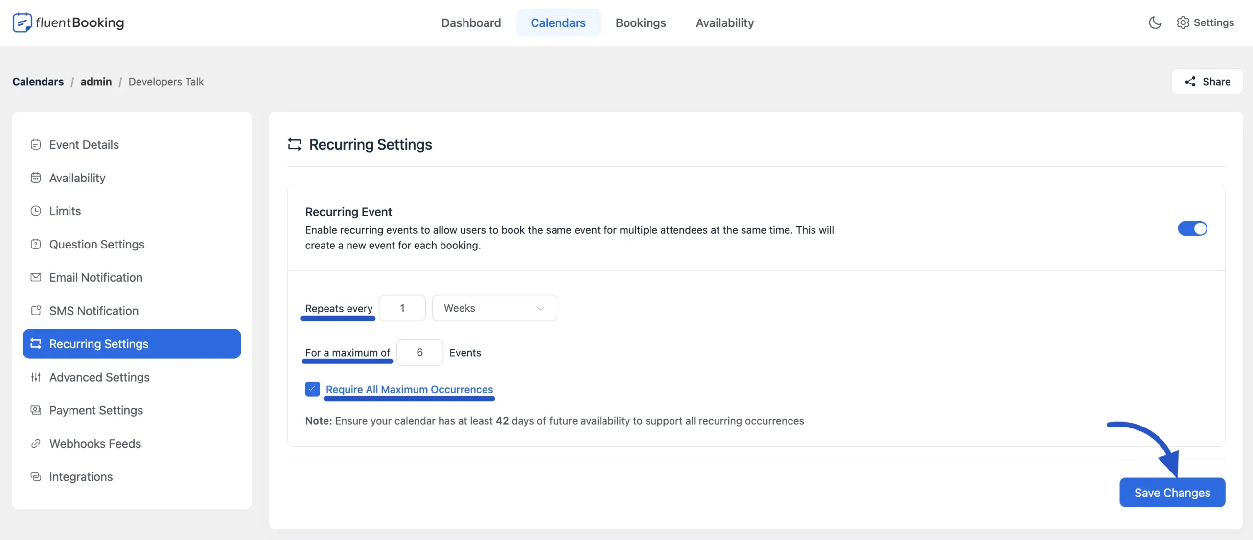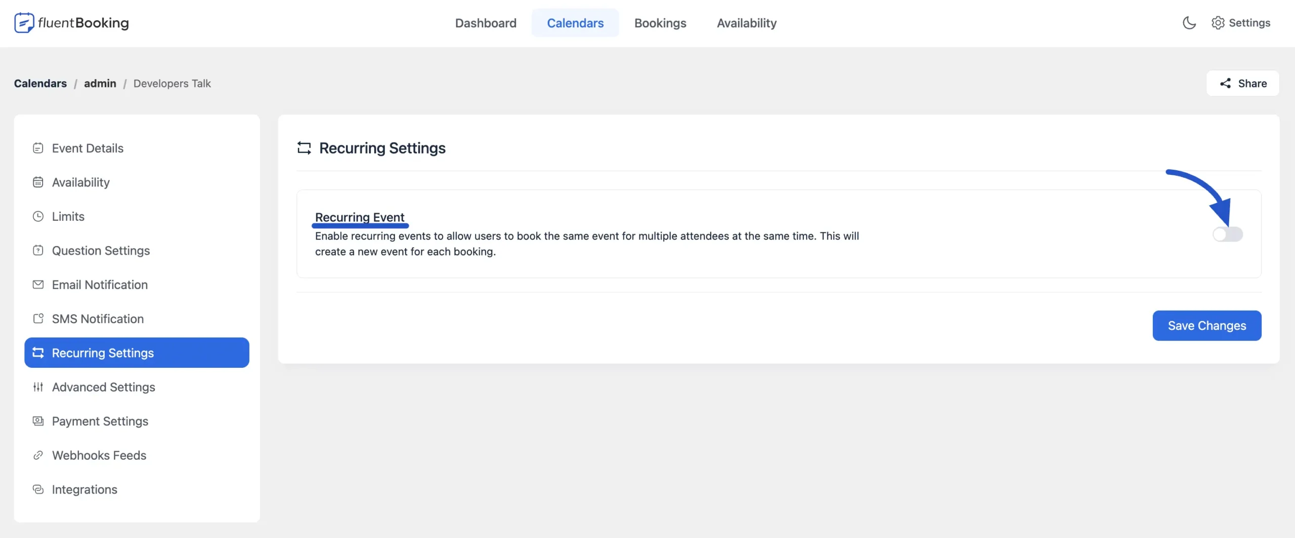 - Navigate to Calendars in your FluentBooking dashboard.